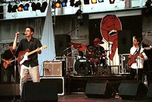 Samedi soir Nous avons à peine le temps de savourer 20 minutes du concert de Claude Bolling et son big band au Théâtre de Verdure qu'il faut dèjà se préparer au deuxième concert. Moins de groupes que la veille mais toujours la qualité avec Rag Mama Rag, Mathis's Mathematical Blues et bien sûr Roland Tchakounté. Quelques petits ennuis techniques ont failli gâcher la soirée mais après un premier set d'observation et une sono plus puissante, la machine à swing s'est relancée... |