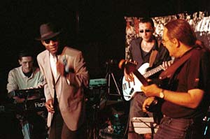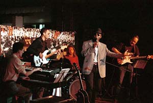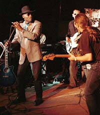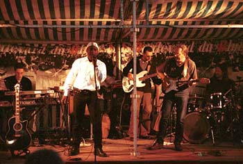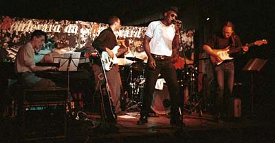 4 sets de 40 minutes environ (avec une petite pause de 10 minutes), c'est un sacré challenge mais finalement, cela permet aussi aux (bons) musiciens de développer toutes les palettes de leur art et de faire monter l'ambiance tranquillement tout au long de cette (chaude) soirée... Ce fut une soirée absolument magique. Après une ou deux chansons, le public est envoûté par la voix, par la langue (Roland chante en bamiléké, un dialecte camerounais) et par les musiciens. C'était seulement le deuxième concert d'Hervé Guillet (basse) mais il faisait déjà jeu égal avec les"anciens" : Christian Rousset (claviers), Jean-Pierre Vimont (guitare) et Manu Riquier (batterie). Vidéos : Ka kounté nouman (3'15) et Ingue (1'06) Les gens ont tellement aimé que les 40 cds ont été tous vendus dès le premier soir ! Les musiciens se sont surpassés. Tout y est passé : le feeling, la cohésion, le blues, le rock, la ballade, l'émotion, la transe. Ca c'est terminé en apothéose à 2 h du matin. Un boeuf époustouflant avec Johann Dalgaard